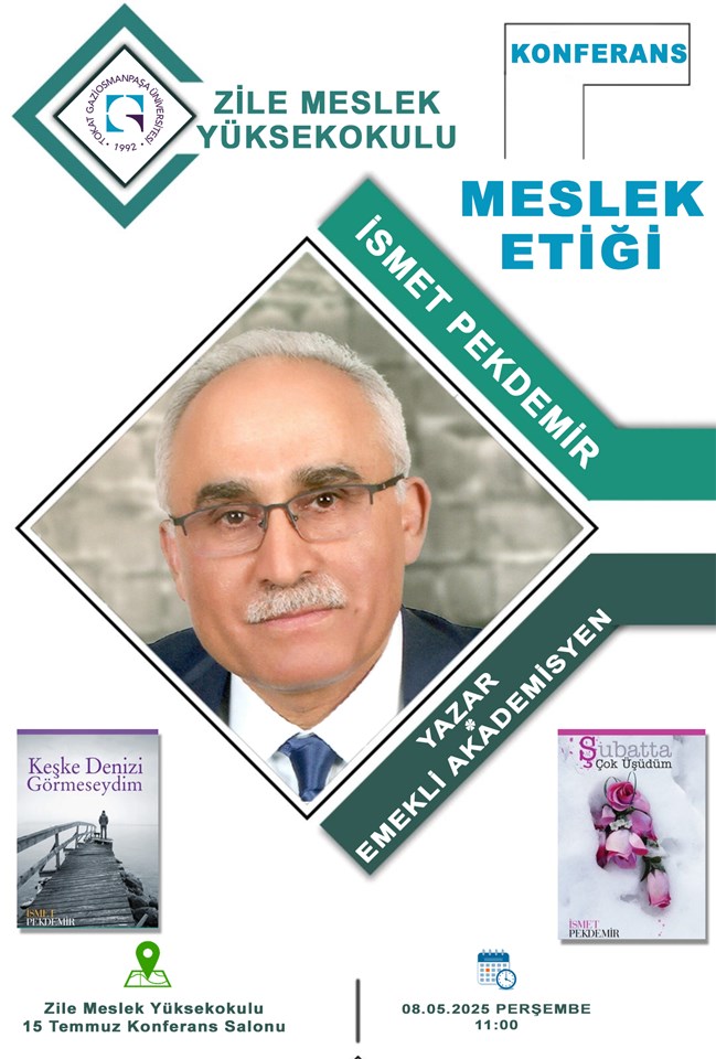 Zile Meslek Yüksekokulu, meslek yaşamında etik değerlerin önemine dikkat çekmek amacıyla anlamlı bir etkinliğe ev sahipliği yaptı. Yüksekokulumuzda uzun yıllar müdürlük, müdür yardımcılığı ve bölüm başkanlığı görevlerinde bulunmuş, emekli öğretim görevlisi ve yazar İsmet PEKDEMİR’in konuşmacı olarak katıldığı “Meslek Etiği” konulu konferans, öğrenci ve akademisyenlerden yoğun ilgi gördü.