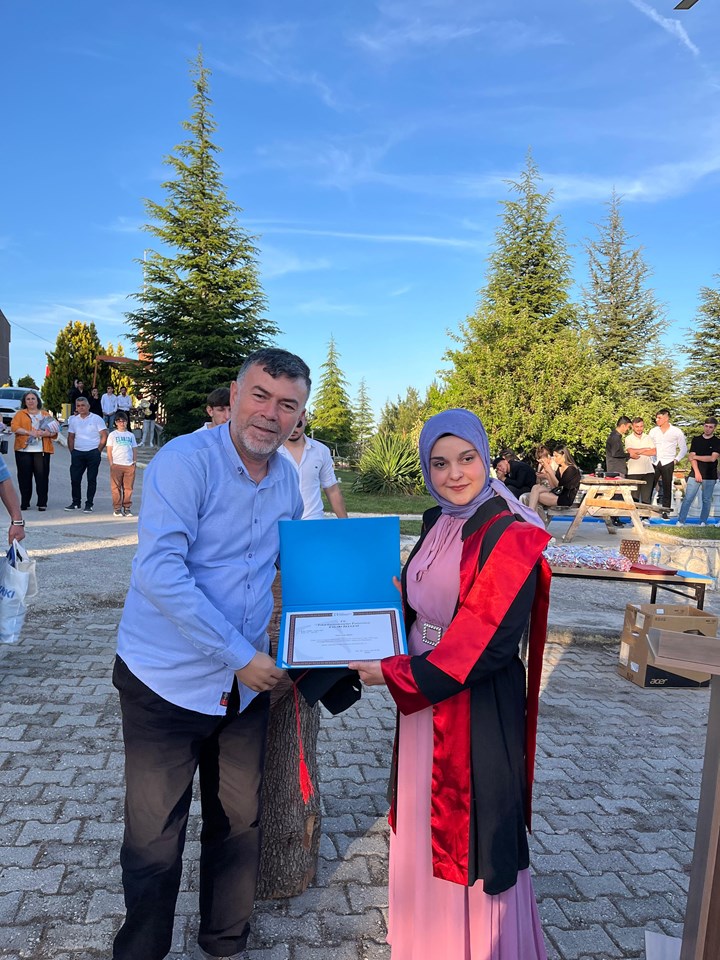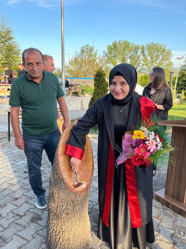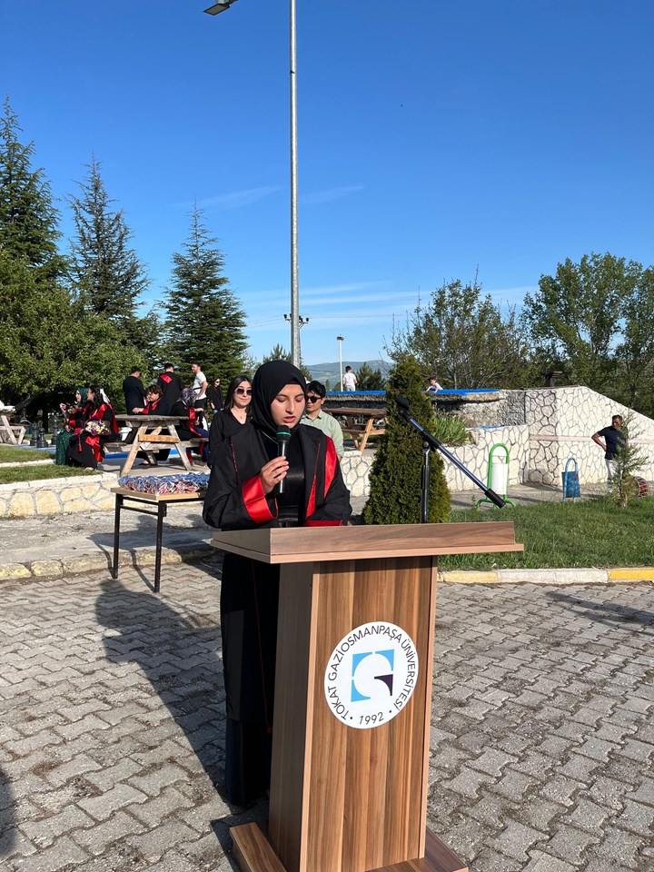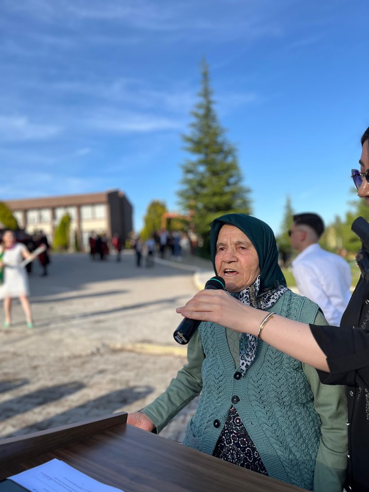 Törende okul birincisi olarak mezun olan öğrenci, yaptığı duygusal konuşmada eğitim sürecinin zorluklarını, bu süreçte ailesinin, hocalarının ve arkadaşlarının desteğini ifade etti. Konuşma, katılımcılar tarafından ilgi ve duygusallıkla dinlendi.