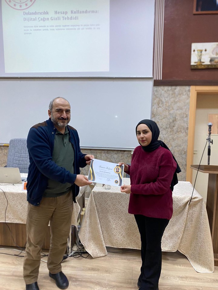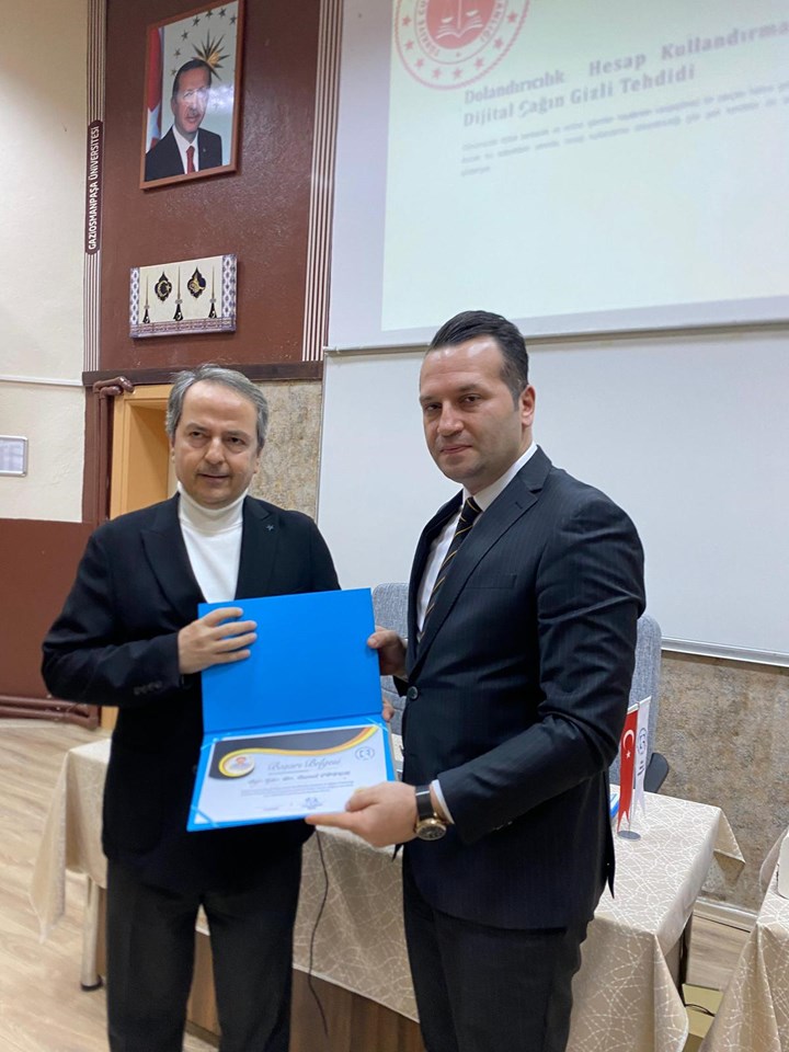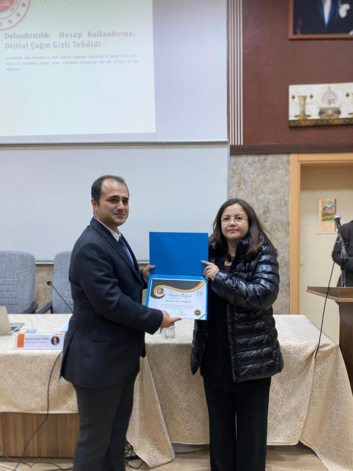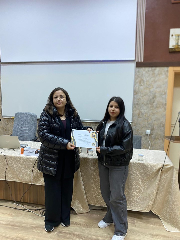 Doçentlik unvanına yükselerek yüksekokulumuzu gururlandıran Doç. Dr. Esra Uygun’a başarı belgesi Zile Cumhuriyet Başsavcısı Sayın Cüneyt Sanıvar tarafından takdim edildi. Doktora eğitimini başarıyla tamamlayan Öğr. Gör. Dr. Samet Tosun adına ise başarı belgesi, Adalet Komisyonu Başkanı Sayın Mustafa Alper Kesik tarafından Öğr. Gör. Dr. Rahmi Şeyhoğlu’na verildi.