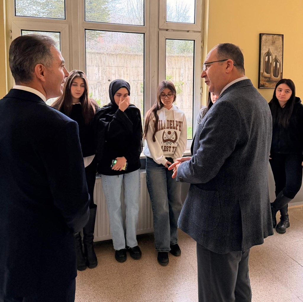 Törenin ardından Rektör Yardımcısı Prof. Dr. Rasim Koçyiğit, yüksekokulumuz birimlerini ziyaret ederek yürütülen çalışmalar hakkında bilgi aldı. Öğrencilerle de bir araya gelen Koçyiğit, samimi bir ortamda öğrencilerle hasbihal ederek görüş ve taleplerini dinledi.