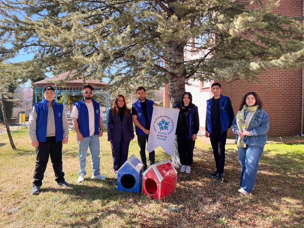 Öğrencilerin gönüllü çalışmalarıyla hazırlanan kedi evleri, kampüs içerisinde sokak hayvanlarının yoğun olarak bulunduğu belirli noktalara yerleştirildi. Gerçekleştirilen bu çalışma ile özellikle kış aylarında sokak hayvanlarının barınma ihtiyacına katkı sağlanması ve kampüste hayvanlara yönelik farkındalık oluşturulması amaçlandı.